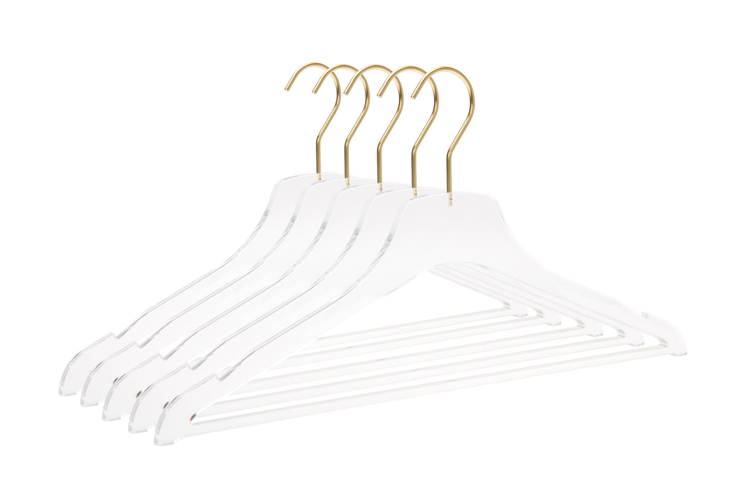 17" Acrylic Lucite Shirt Coat Suit Hanger with Strap Notch, Pant Bar and Gold Hardware - Set of 5 Hangers