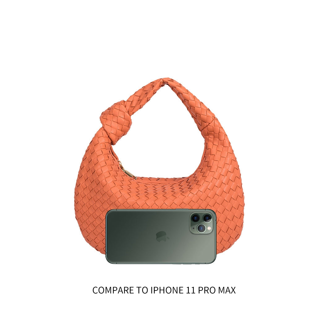 Elegantly designed and soft to the touch, the Drew is made of non-toxic and cruelty-free vegan leather. Its small size makes perfect for all-day wear. The handle is adorned with a knotted detail and the interior features zip and slot pockets. For more space size up with the Brigitte hobo bag.