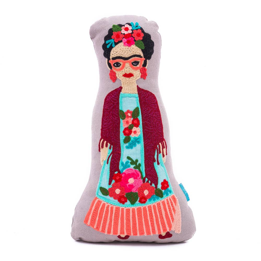 Frida embroidery doll with reboso [long scarf] pillow by Karma Living; 100% cotton - spot clean only.