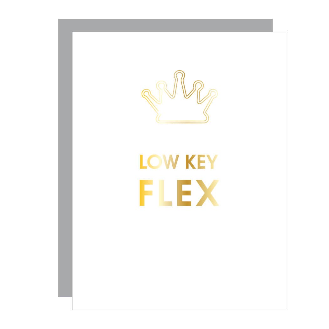 Our "Low Key Flex" card is letterpress printed on a vintage printing press. Card includes a heavy duty crown-shaped paper clip.