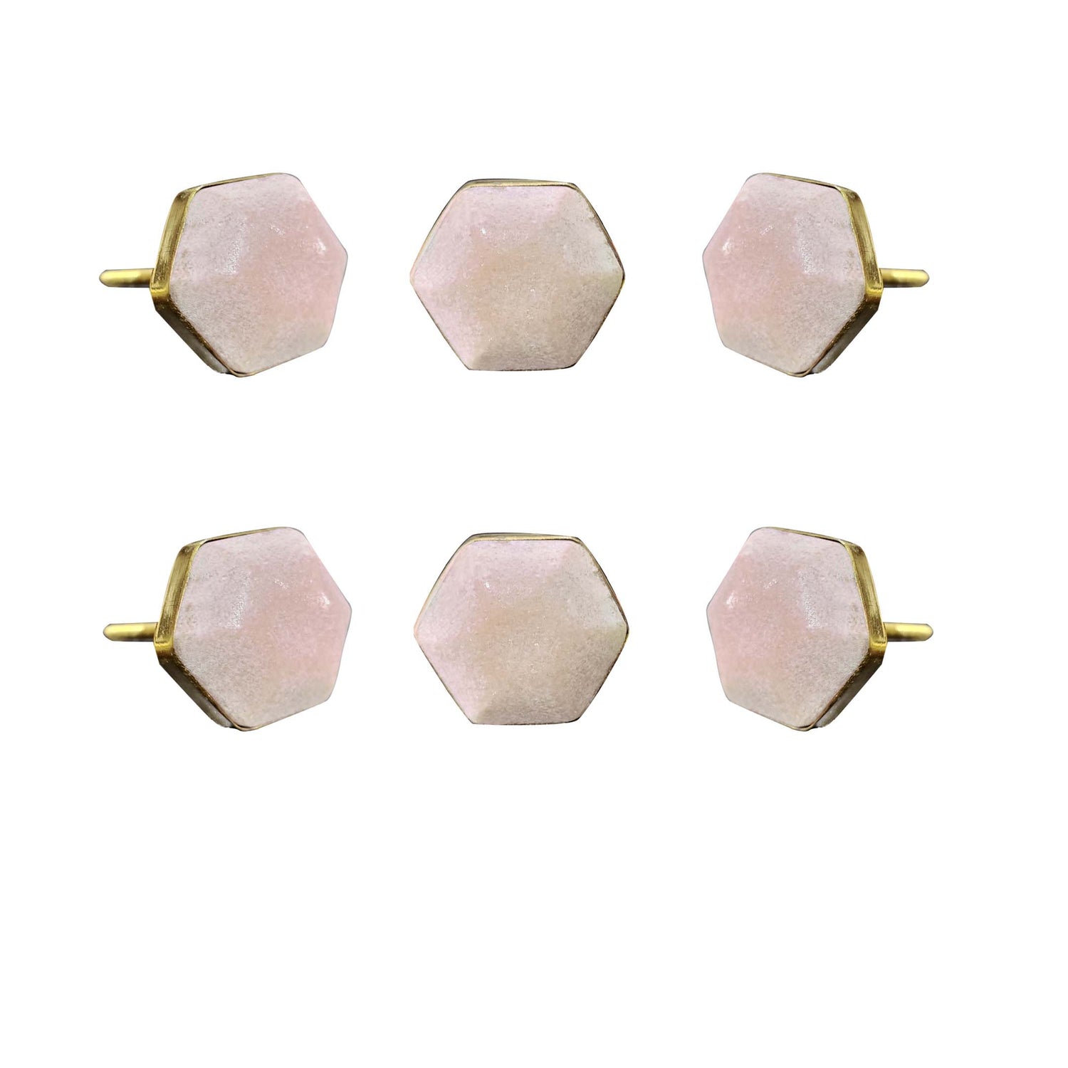 Pink Hexagon Marble Knobs - Set of 6