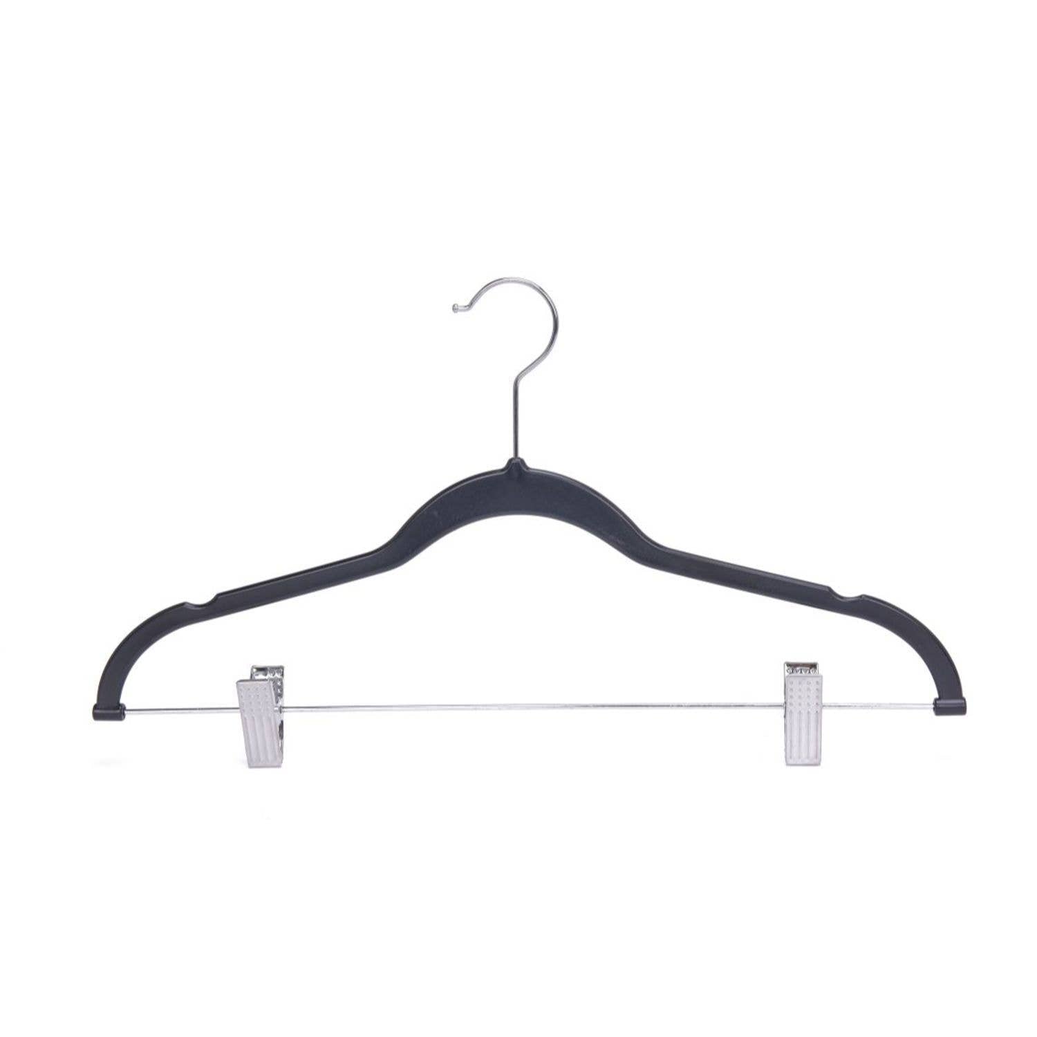 These Black Plastic Hangers with Notches and Clips are great for our friends on a budget who also want to maximize their hanging space! They can hold your shirt, skirt, dresses or shorts!