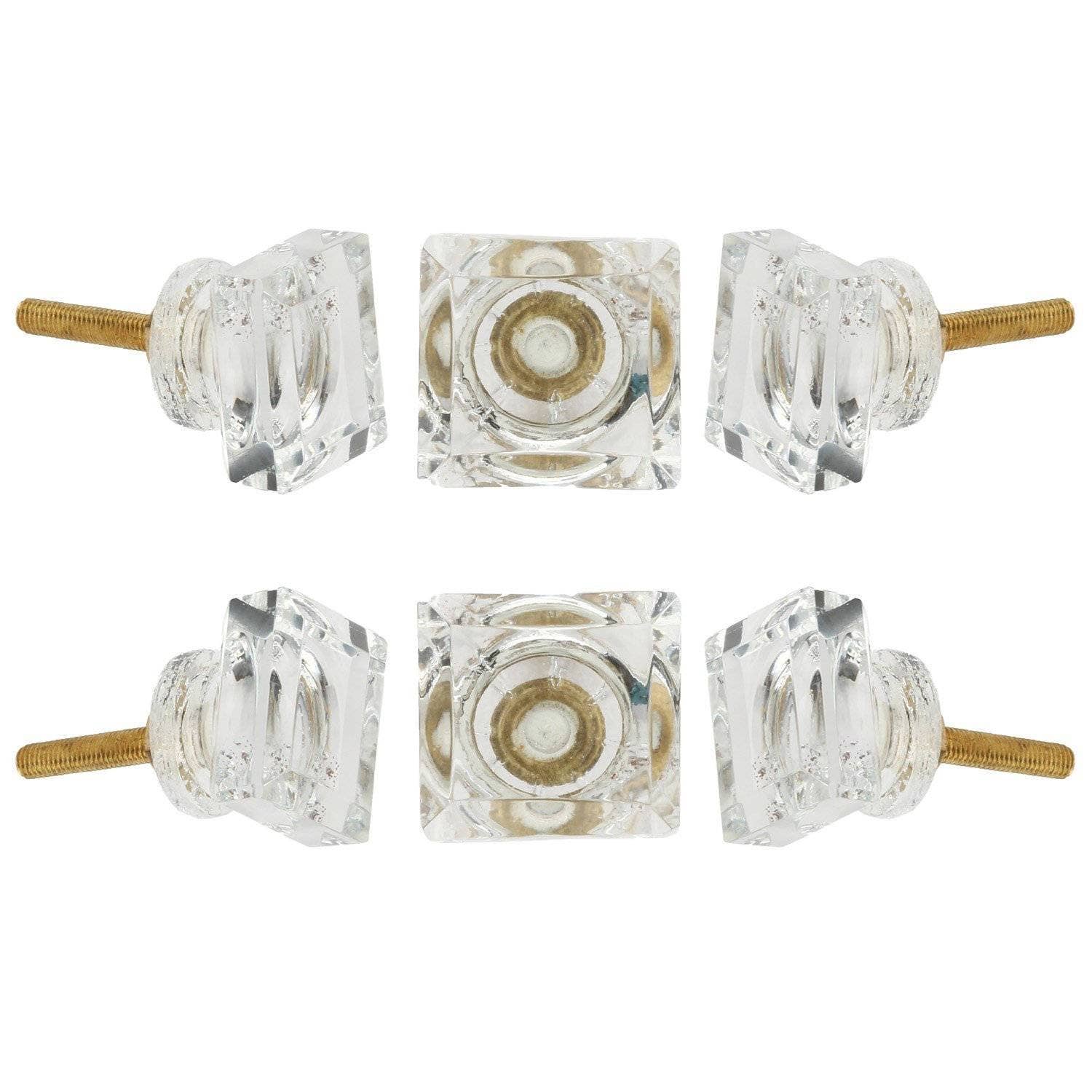 These are beautifully handcrafted set of 6 Clear Glass Knobs with gold screw. These high quality hand made cabinet pulls will add unique touch to the cabinets of your Kitchen, Bathroom or Home Office.