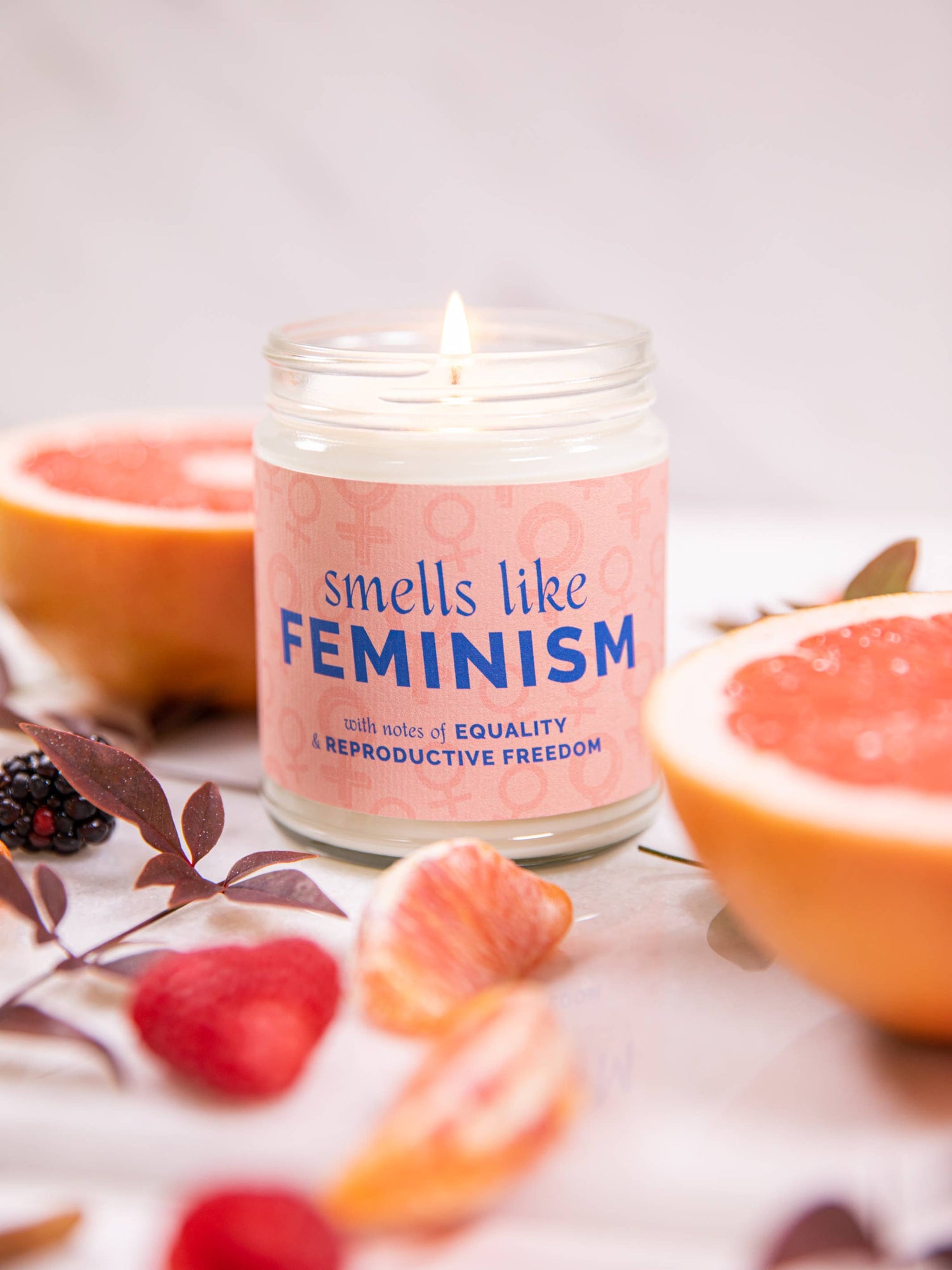 "Smells like Feminism" candle, with notes of equality and reproductive freedom. Made in Memphis, TN, in collaboration with Falling Into Place (another amazing woman-owned business!).