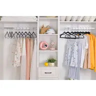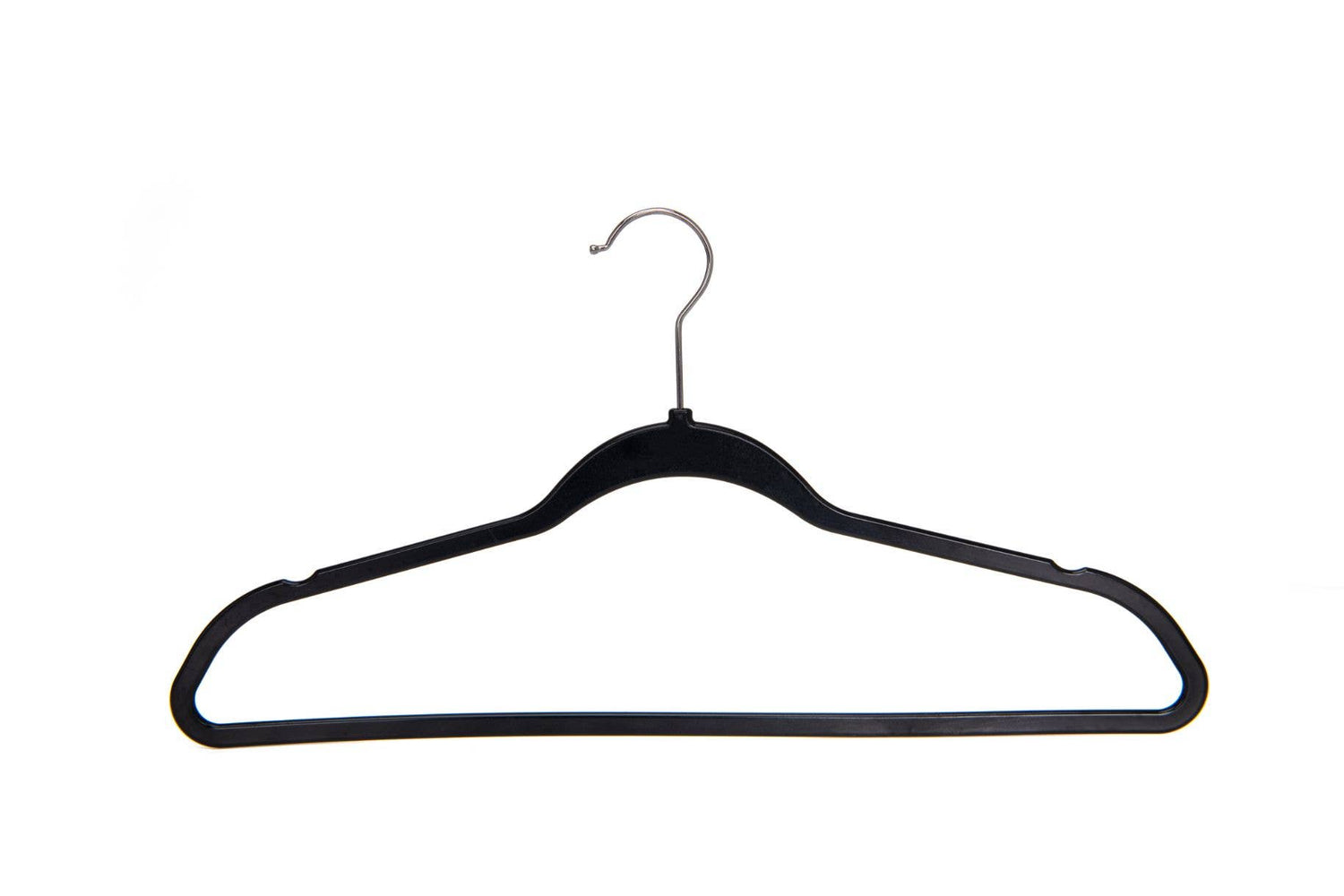 These Space Saving Budget Friendly Black Plastic Shirt Hangers with Strap Notches are the perfect way to maximize your closet space while saving money.